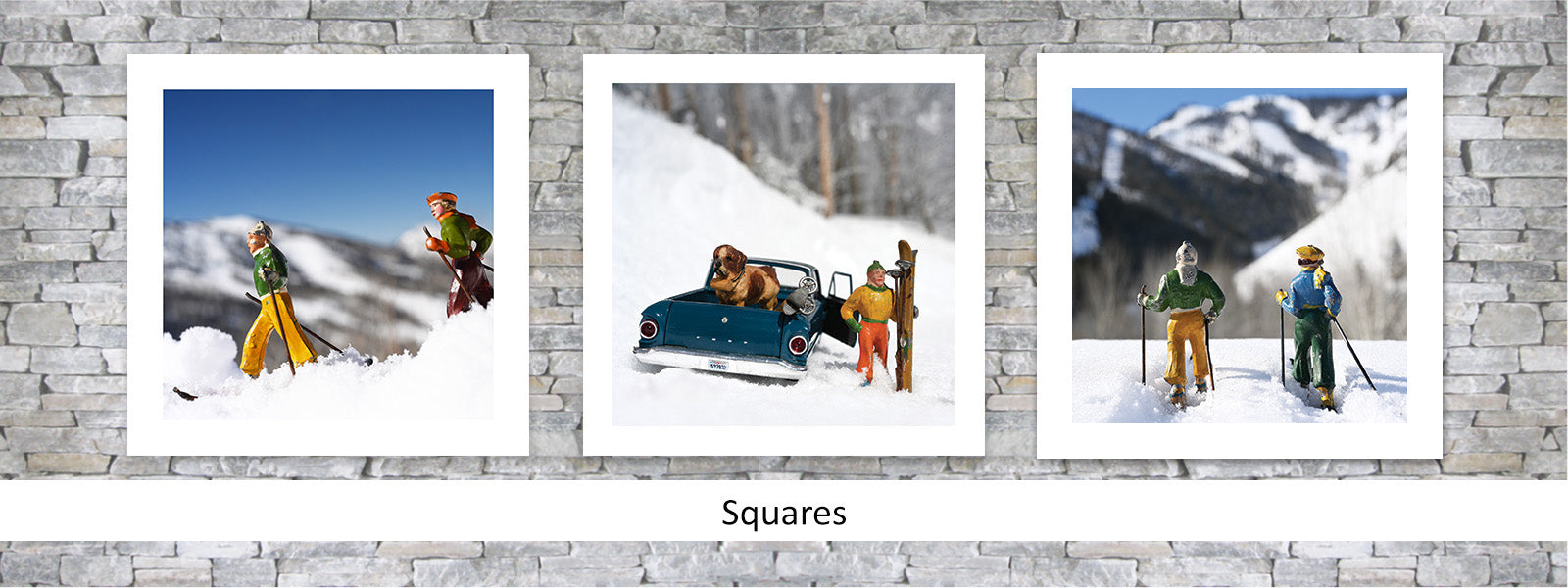 “She creates the most wonderful images featuring vintage toy skiers trekking up and racing down snow-covered slopes. At first glance you don’t realize the figures are toys because of the way she sets up the shots, so there’s a sort of unfolding in the way you experience the art. Ski enthusiasts looking to refresh their art or needing something super fun, colorful and lively should check out her work. Put a large work as a statement in a living room or entryway, or a grid of smaller images in a game room or bunk room.” - Chase Reynolds Ewald