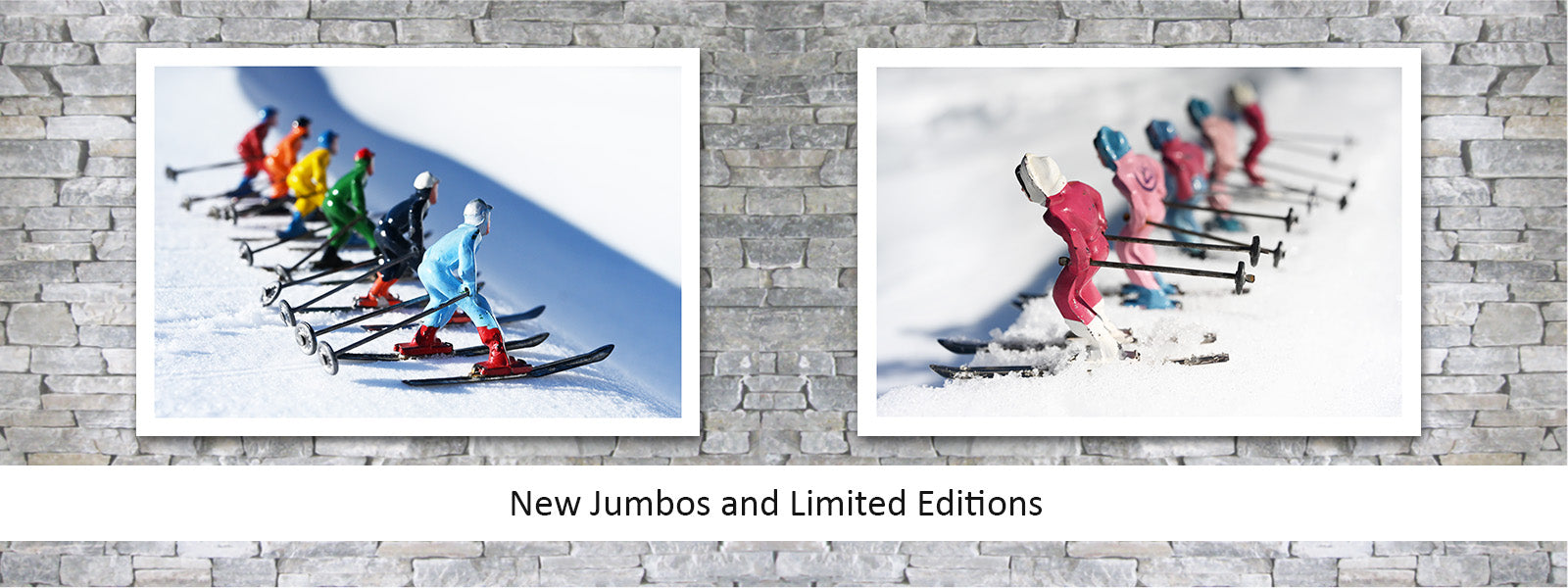 “She creates the most wonderful images featuring vintage toy skiers trekking up and racing down snow-covered slopes. At first glance you don’t realize the figures are toys because of the way she sets up the shots, so there’s a sort of unfolding in the way you experience the art. Ski enthusiasts looking to refresh their art or needing something super fun, colorful and lively should check out her work. Put a large work as a statement in a living room or entryway, or a grid of smaller images in a game room or bunk room.” - Chase Reynolds Ewald