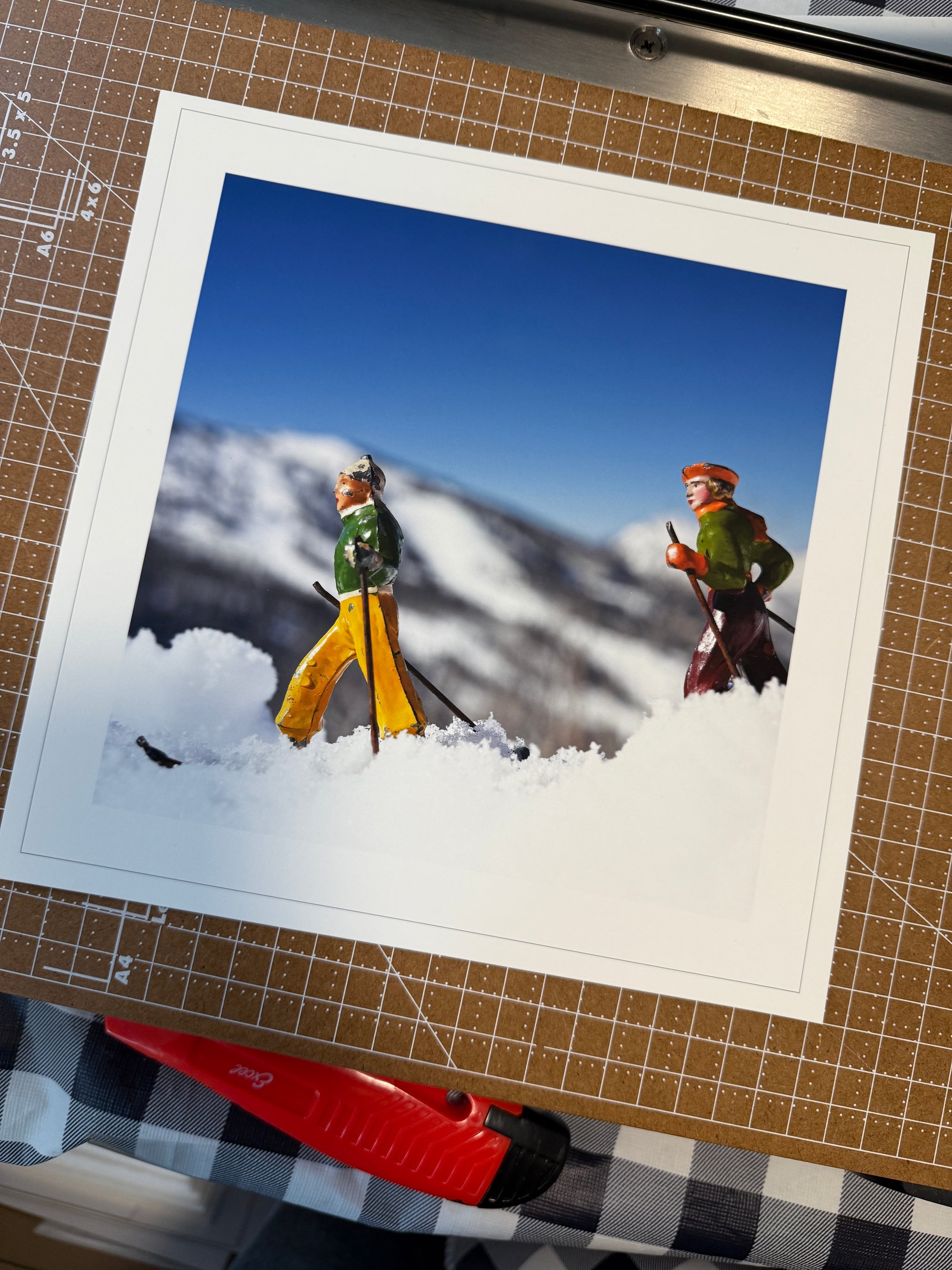 Made entirely from small Hooey Mountain vintage toy skier images,...